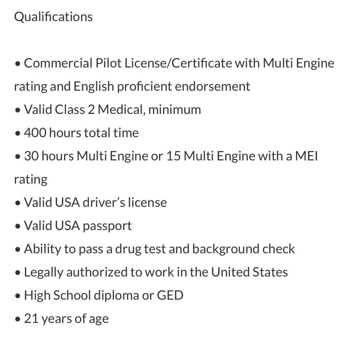 CASTLE AVIATION: 500TT minimum, 800TT competitive