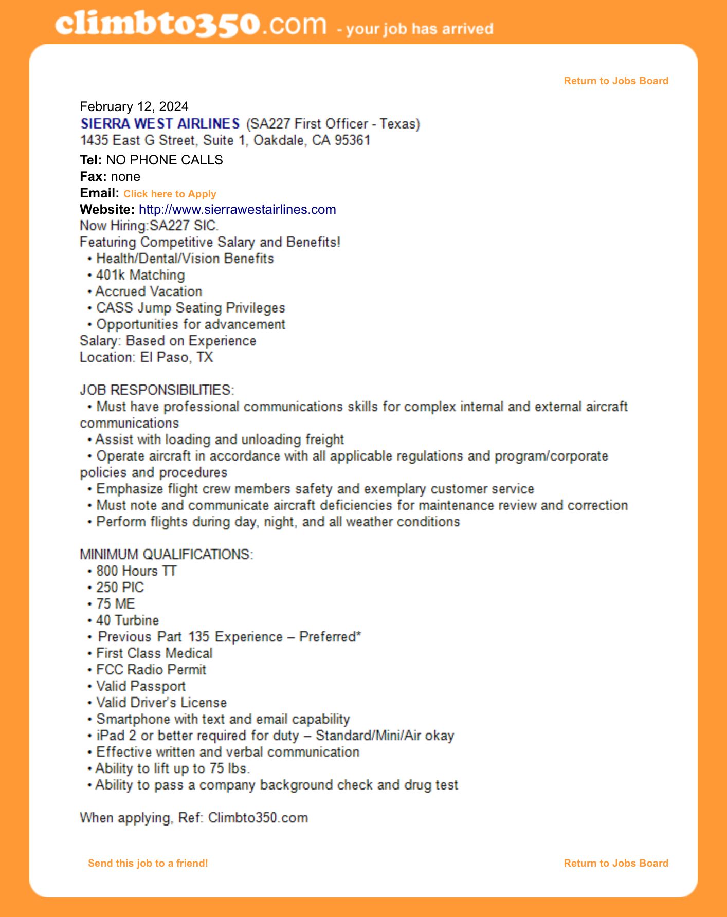 For now, let’s jump straight back into the deep dive series, with Sierra West Airlines. They’re a Part 135 Air Carrier based in Texas, and the cool thing about today’s guest is that he got hired with very low hours.